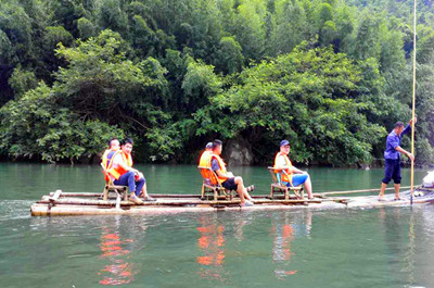 怀着对溪水的喜爱,都纷纷坐上竹排,在溪中游走,感受迎面扑来的清风,感受溪水从脚下流淌。